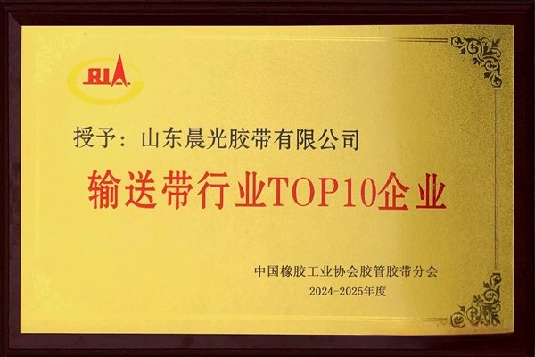 山東晨光膠帶有限公司榮膺2024-2025年度輸送帶行業(yè)TOP10企業(yè)!
